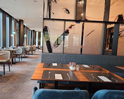 Speiseraum modern und bequem eingerichtet.