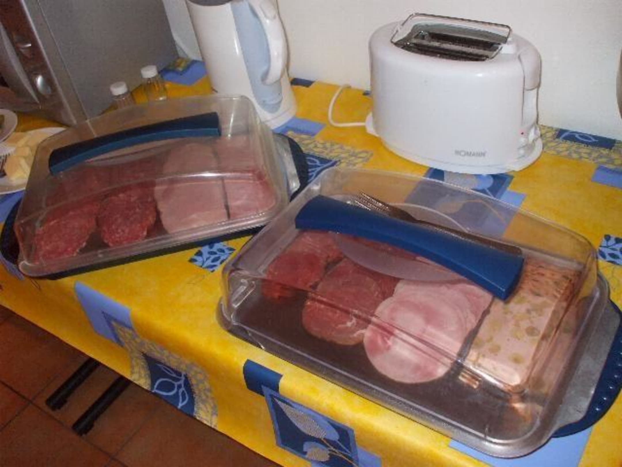 Auswahl der Wurstsorten beim Frühstücksbuffet