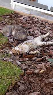 Hauskatzen beim Frühstück