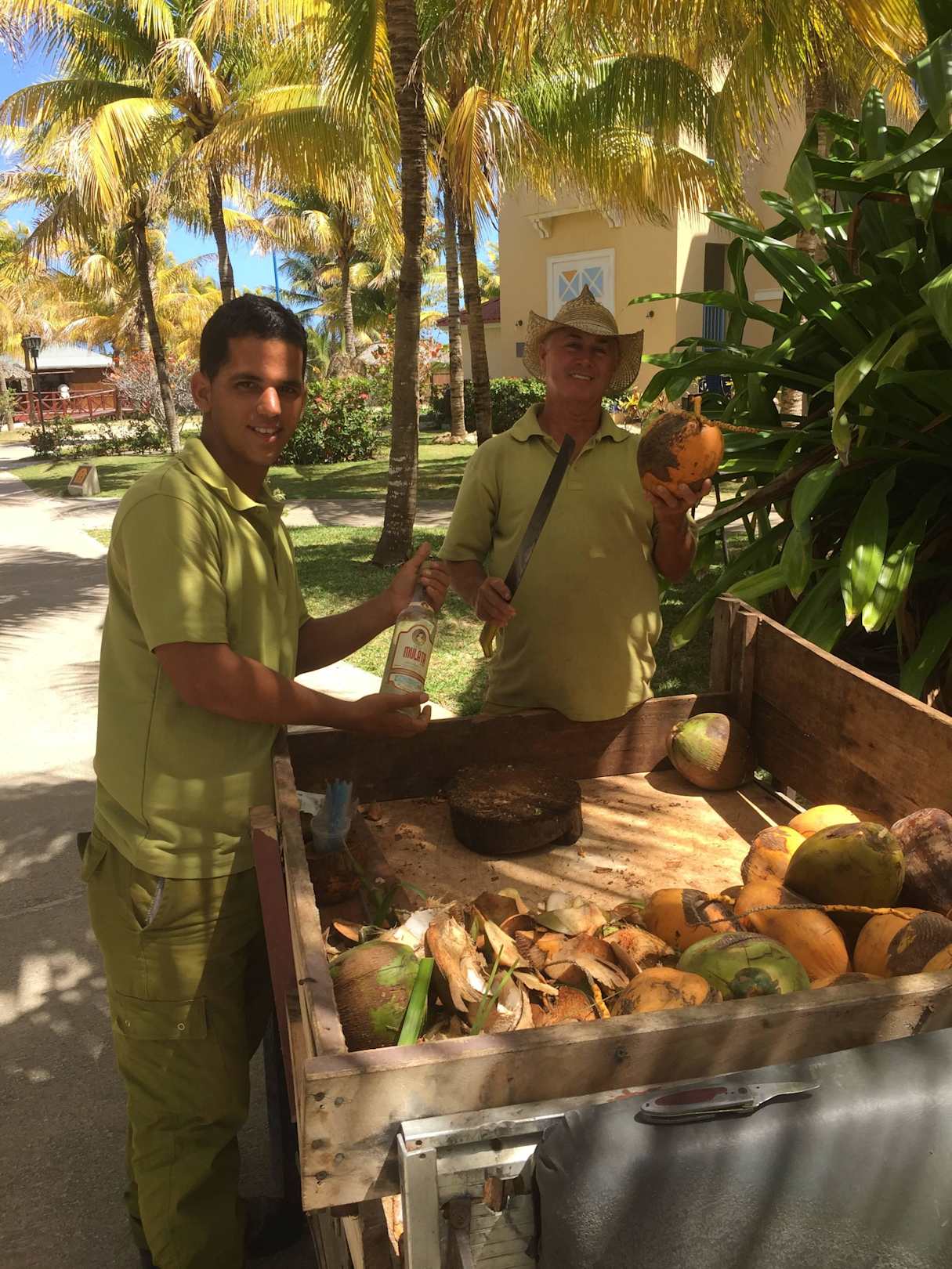 Er ist ein sehr freundlicher Gärtner vom Hotel. Er kommt auch täglich an den Strand. Dann gibt es eine Kokosnuss frisch mit oder ohne Rum ;-)