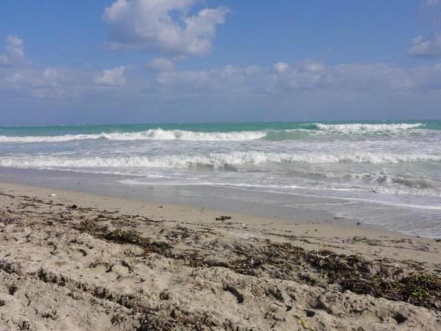 Strand mit viel Brandung/Tang