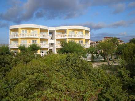 Blick vom Strand zum Hotel