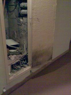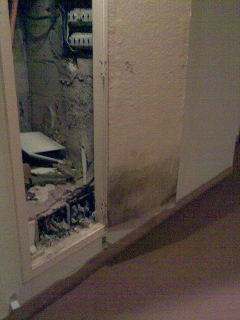 Wenn Sie durch den Flur des Hotels laufen, werden Ihnen die vielen Bilder an den Wänden auffallen. Hinter den meisten Bildern sind Versorgungskästen. Auf dem Bild können Sie Geöffnete sehen.