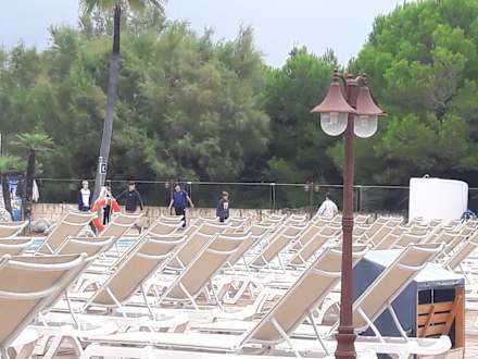 Blick Richtung Basketballfeld und Strand - die Hotels Albufera Playa und Park sind in einer großen Anlage, haben ein tolles Animationsteam. Achtung - die eigenen Tischtennisschläger mitnehmen! Zum Ende der Saison gab es nur mehr 2 für alle Gäste