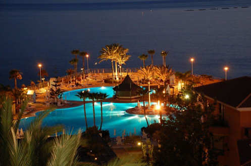 Der Pool des Hotels bei Nacht