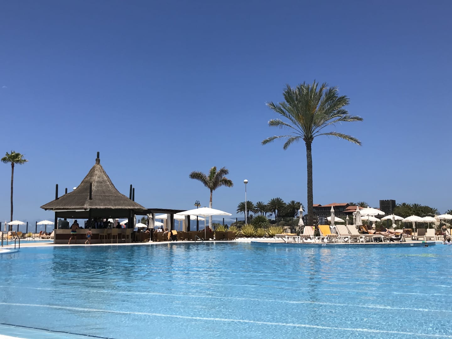 Pool mit Poolbar und links davon der Meerwasserpool.