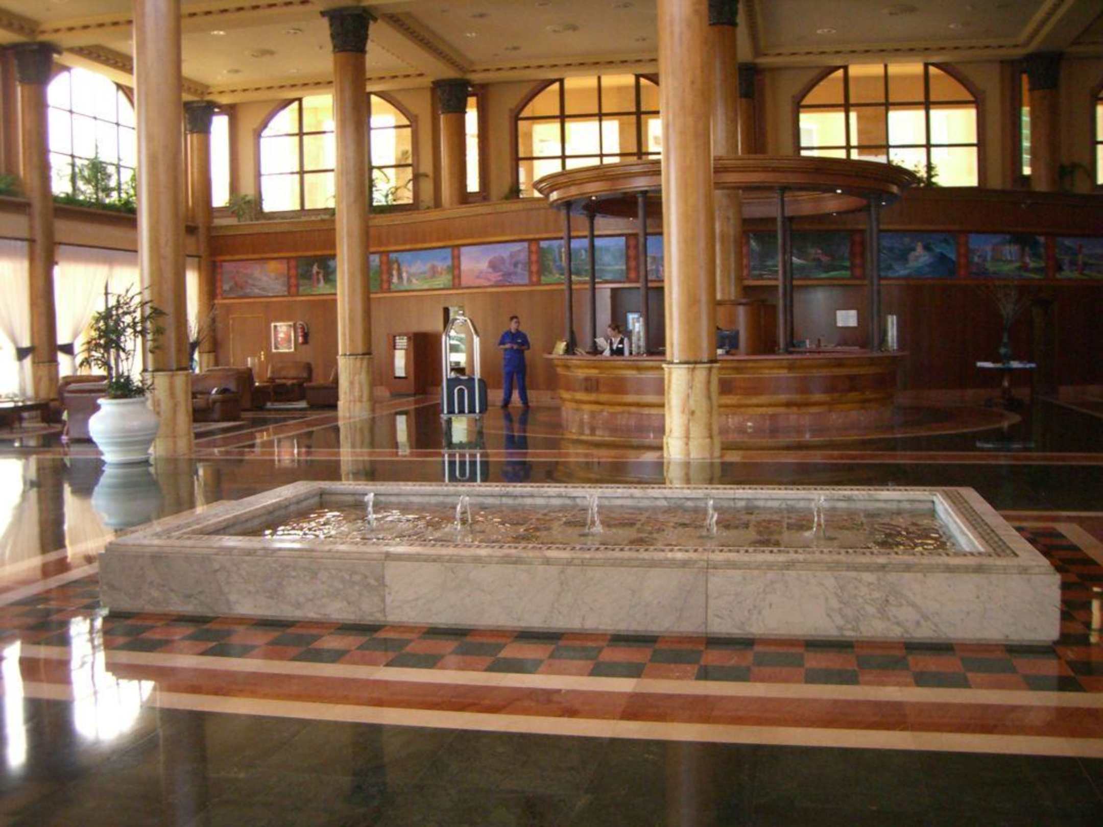 Hotellobby mit Blick auf die Rezeption
