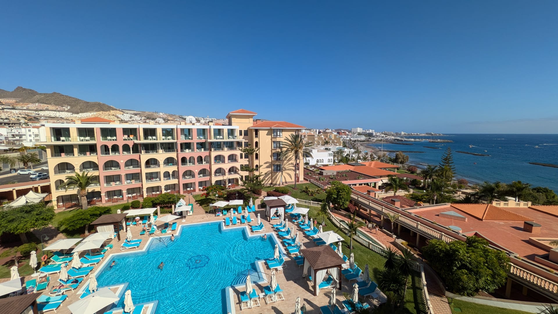 Aussicht Duplex Suite Haus Carmen auf obere Poolanlage und das Meer
