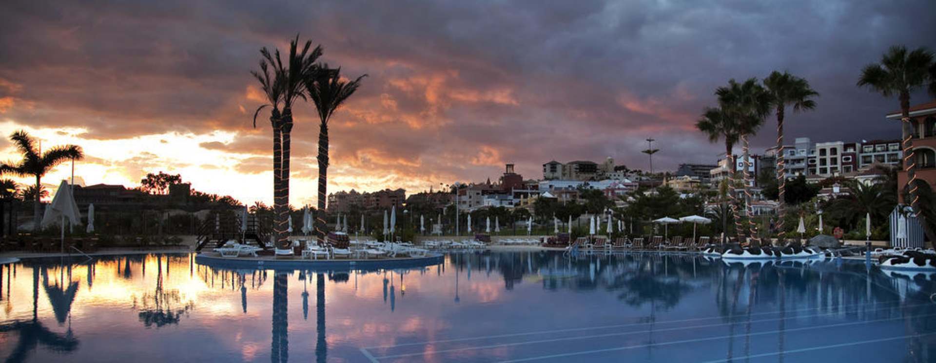 Poollandschaft im Abendlicht