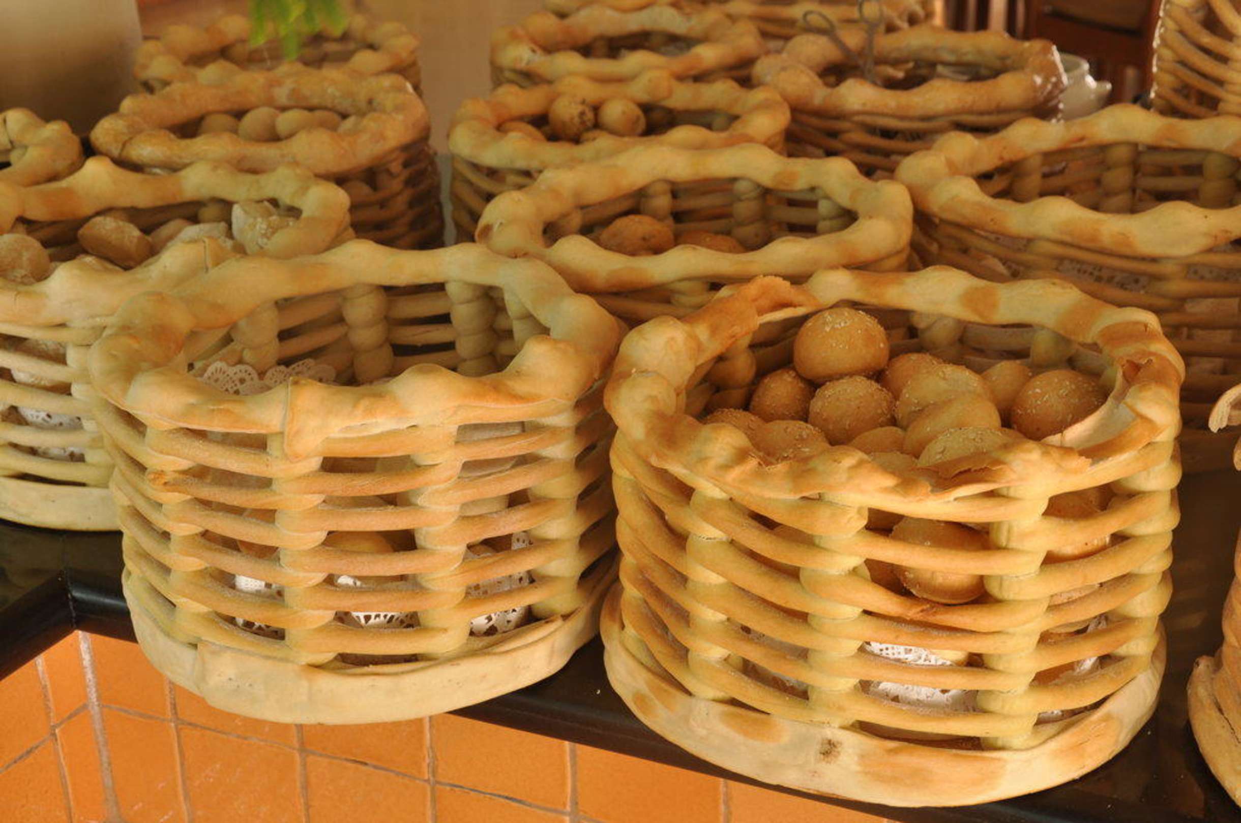 Diese Brötchenkörbe im Strandrestaurant waren aus Brotteig gebacken