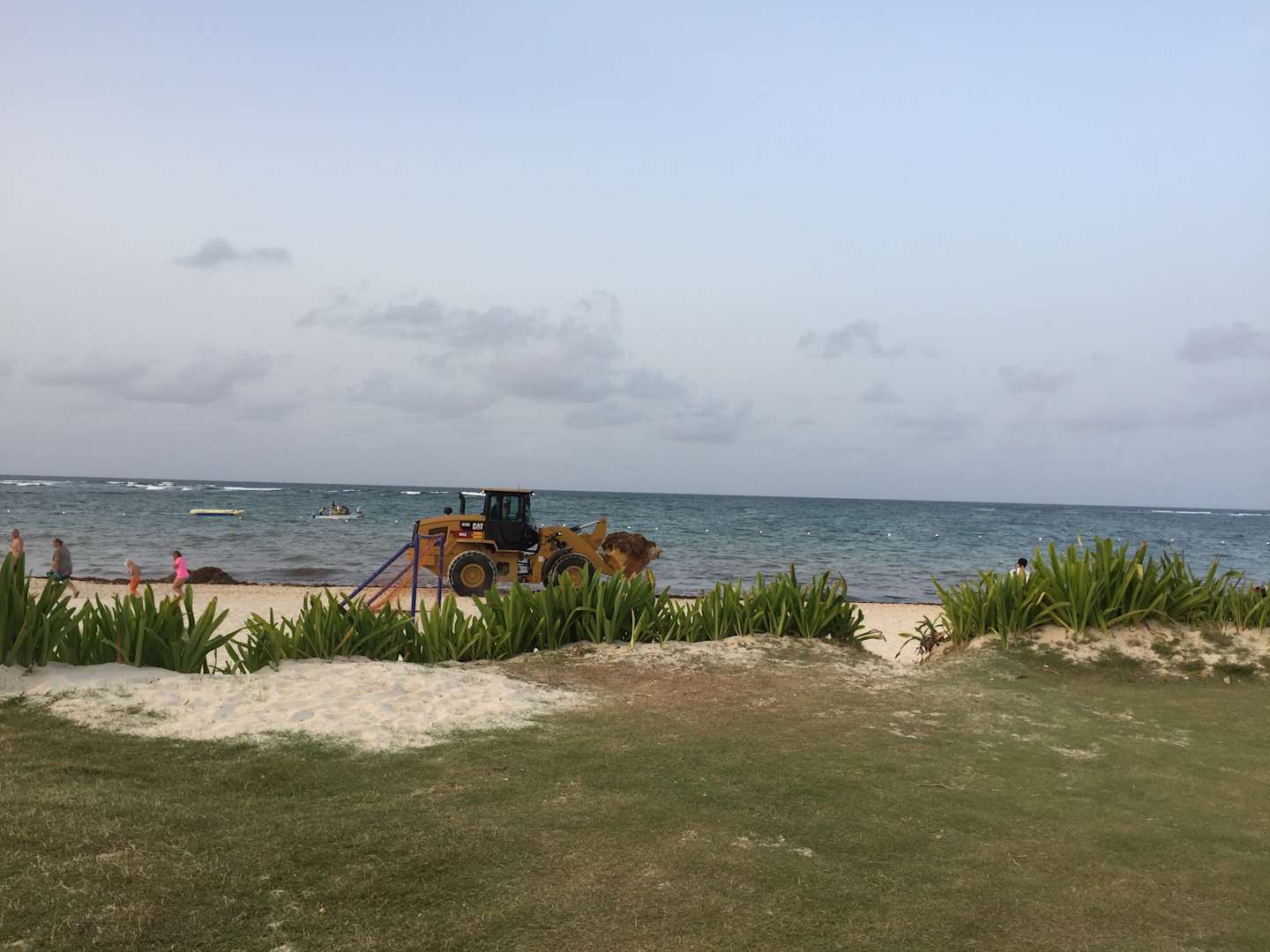 Strandin der zweiten Woche gab es dann sogar einen Radlader am Strand zum wegbringen des stinkenden Seegrases...
