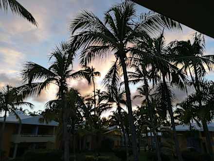 Blick in der Abenddämmerung von unserem Balkon
