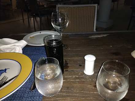 Die Tische im Steakrestaurant müssten abends mal abgewischt werden.
