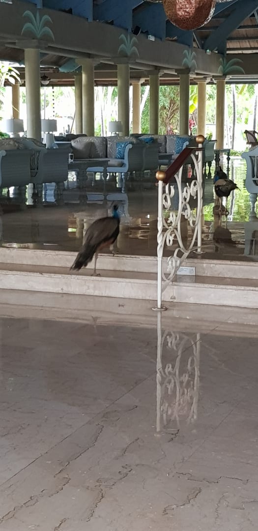 Ein Pfau der durch die Lobby spaziert