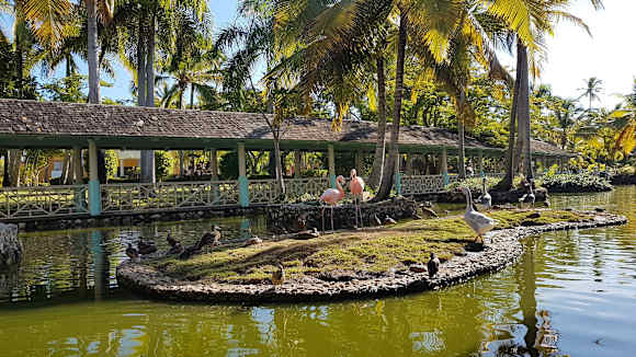 GartenanlageRückwärtig ist das Buffetrestaurant; Hat man Glück und sitzt direkt am großen Teich, ist der Blick auf den Garten sehr schön