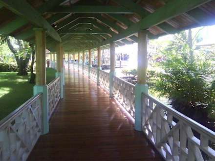 Gang zum Restaurant vom Garten aus