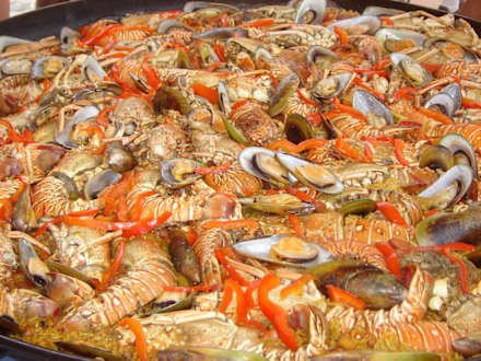 Paëlla langoustes sur la plage
