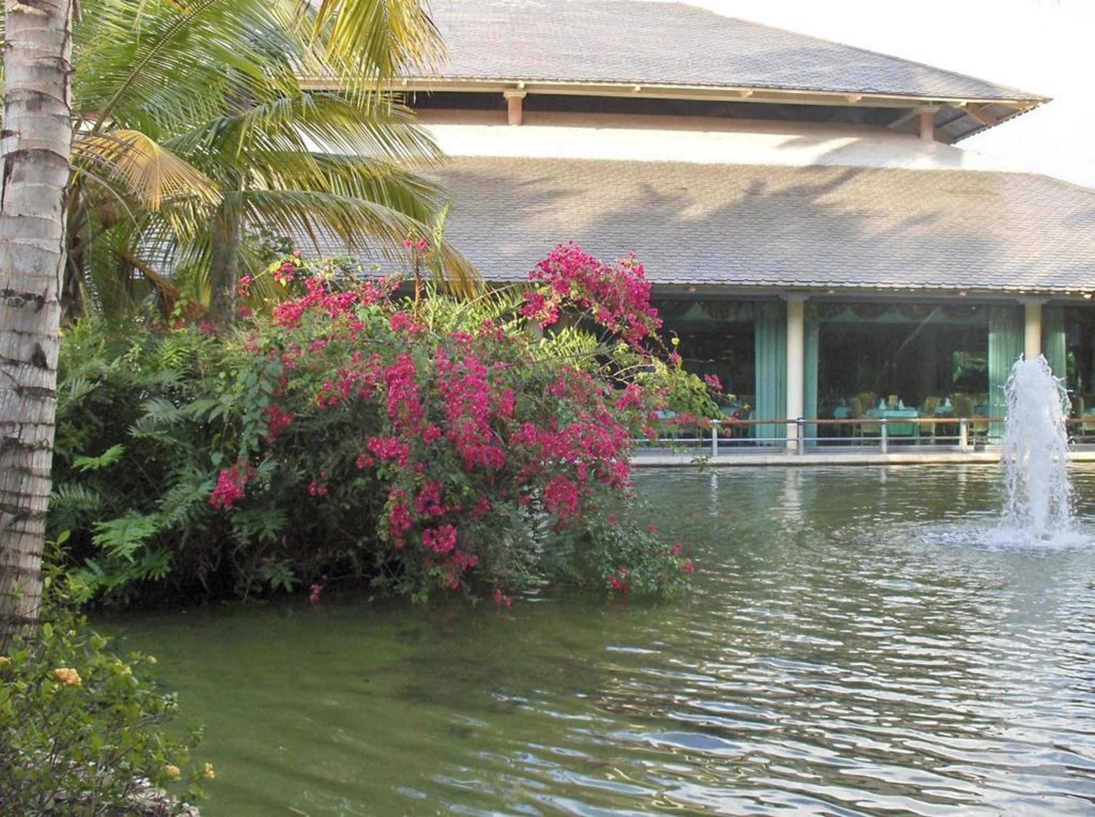 Gartenanlage mit Blick auf das Restaurant