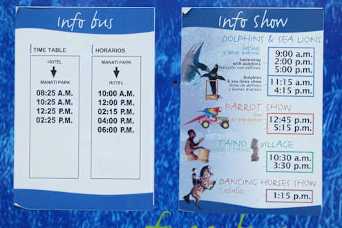 Die Fahrpläne hängen gegenüber dem Hoteleingang.