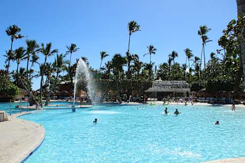 Poolblick aus Richtung vor der Swimup Bar