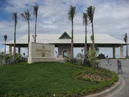Die neu Gestaltet Einfahrt in das Iberostar Bavaro Resort (4 Hotels, ein Golfplatz und demnächst Iberostate) Die Einfahrt ist jetzt nicht mehr in der höhe des RIU Resorts, sondern erheblich früher.