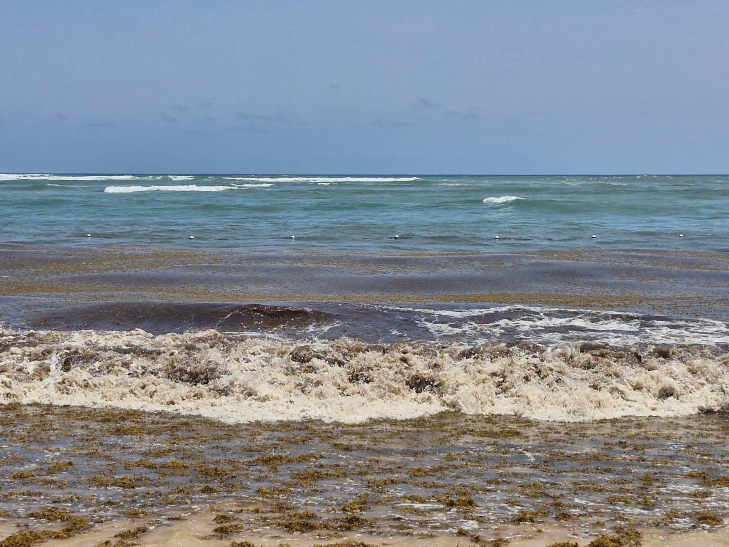 Strand und Meer voller Braunalgen mit fürchterlichem Geruch.