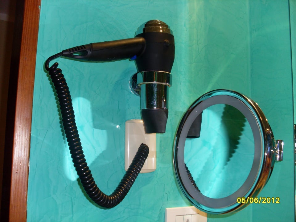 Föhn und beleuchteter Schminkspiegel