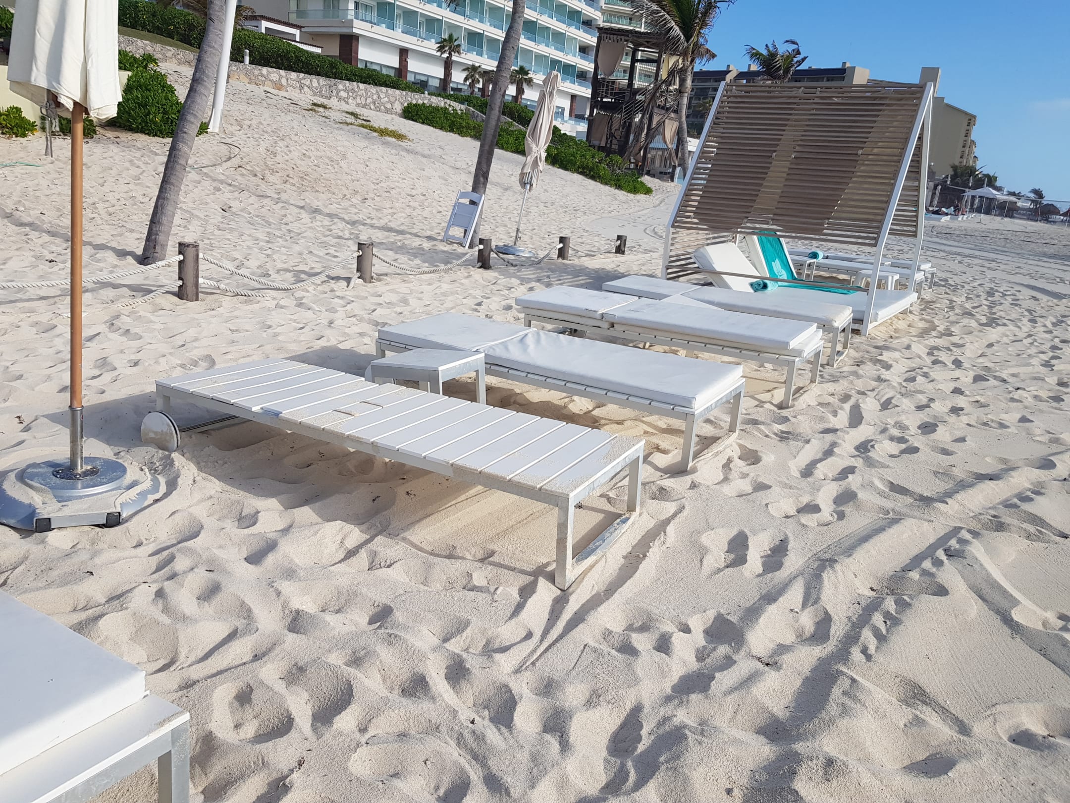 StrandLiegen mal mit, mal ohne Auflagen. Kein einheitliches Bild. Kaum Bali-Betten.
