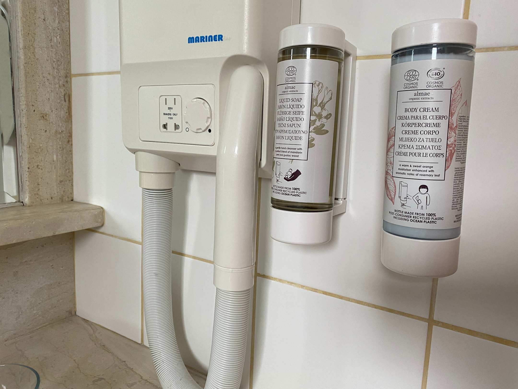Pflegeprodukte (Bio) im Badezimmer neben dem Waschbecken
