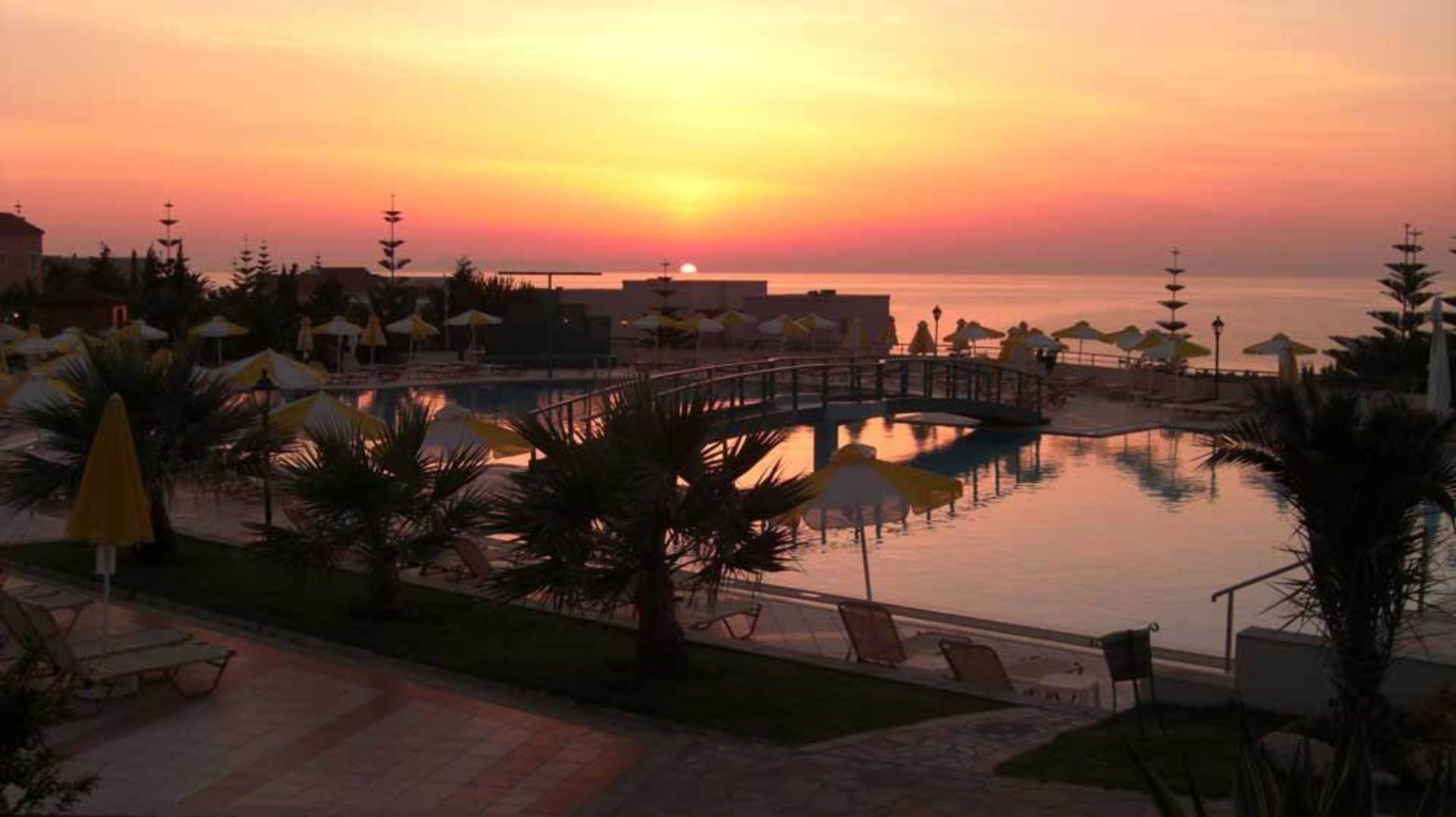 vom Restaurant aus mit Blick auf Hauptpool und Meer