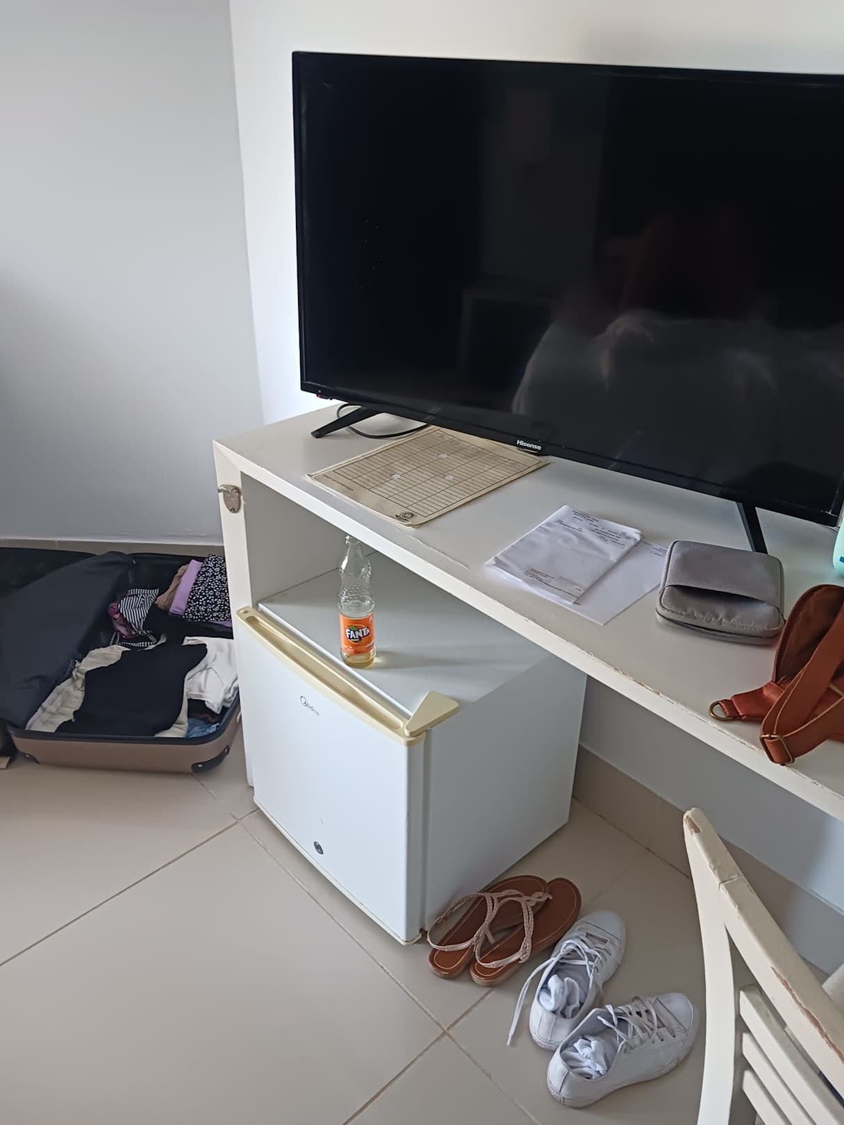 Auf Nachfrage wurde der Kühlschrank täglich aufgeüllt. Befüllt war er mit einer jeweils einer Flasche Cola, Fanta, Wasser und einem Spriteähnlichen Getränk.