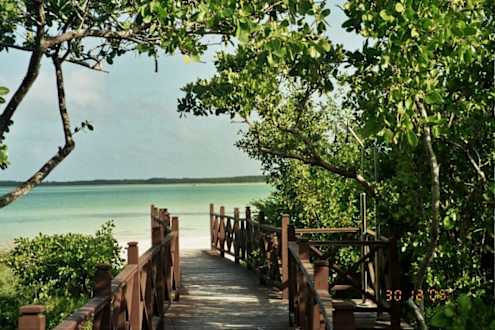 Der Bohlenweg zum Strand vom Hotel Occidental Royal Hideaway.