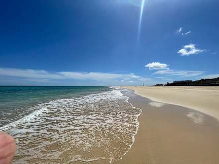 Direkter Strand vorm Hotel. Der Strand ist breit und man kann 2 Std. in einer Richtung gehen.