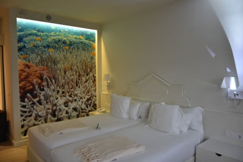 sehr schöne Fototapete, bequeme Betten