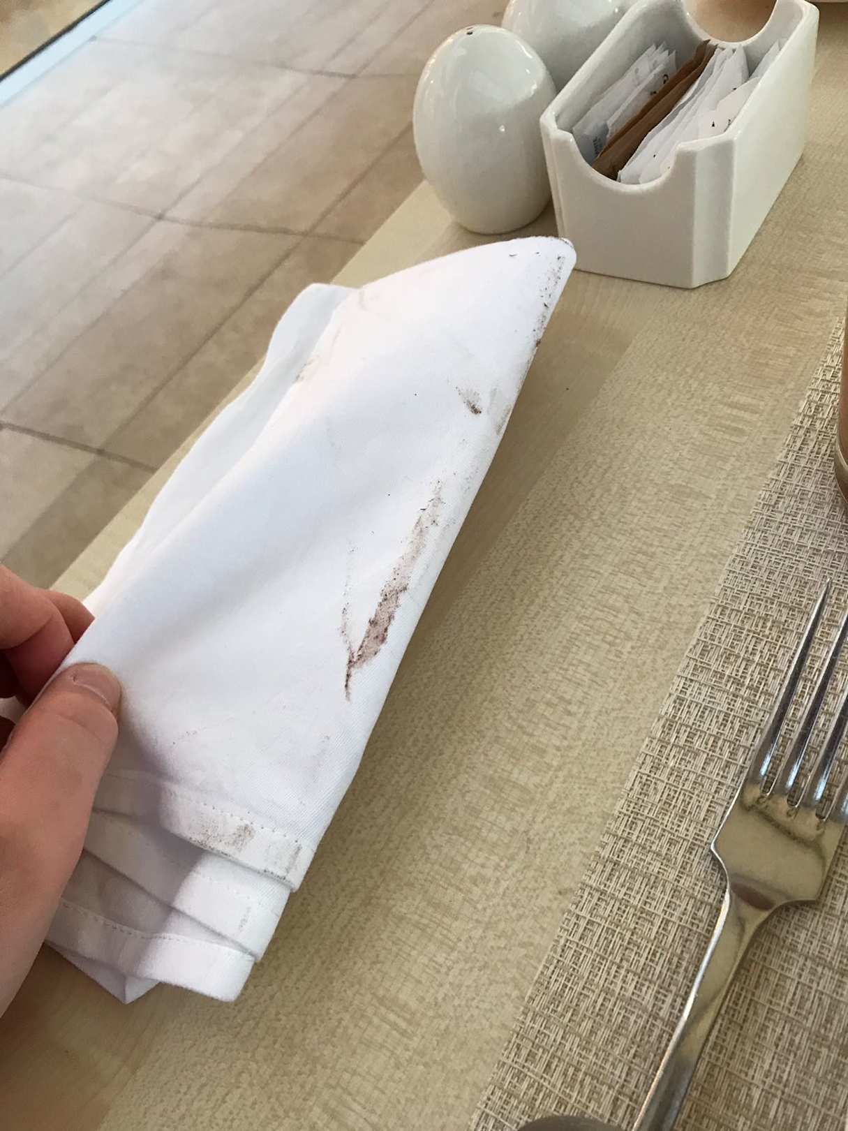 Dreckige Servietten beim Frühstück