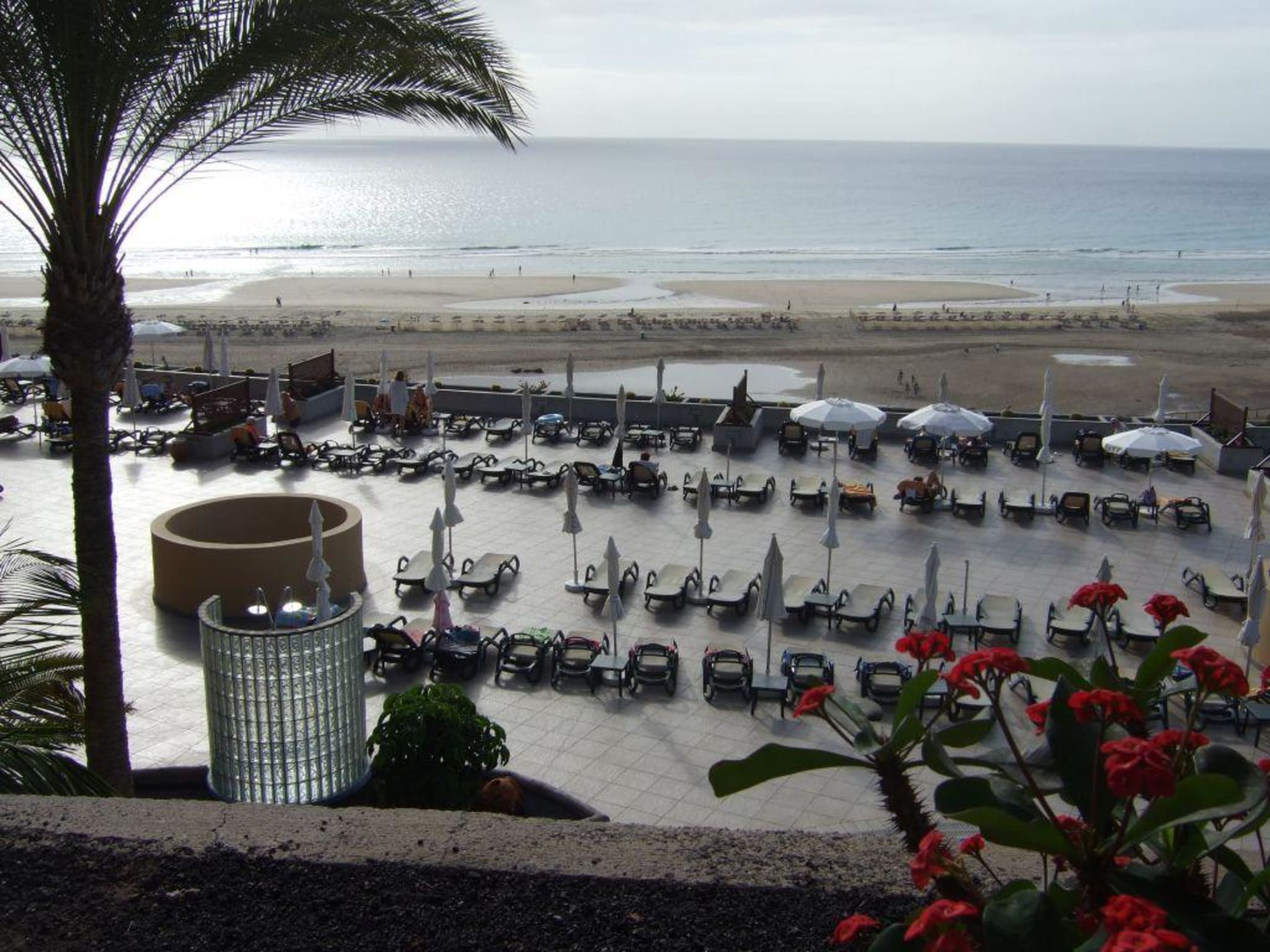 Blick auf die Terrasse mit Pool zum StrandDer Weg zum Strand ist jedoch von dieser Stelle recht weit.