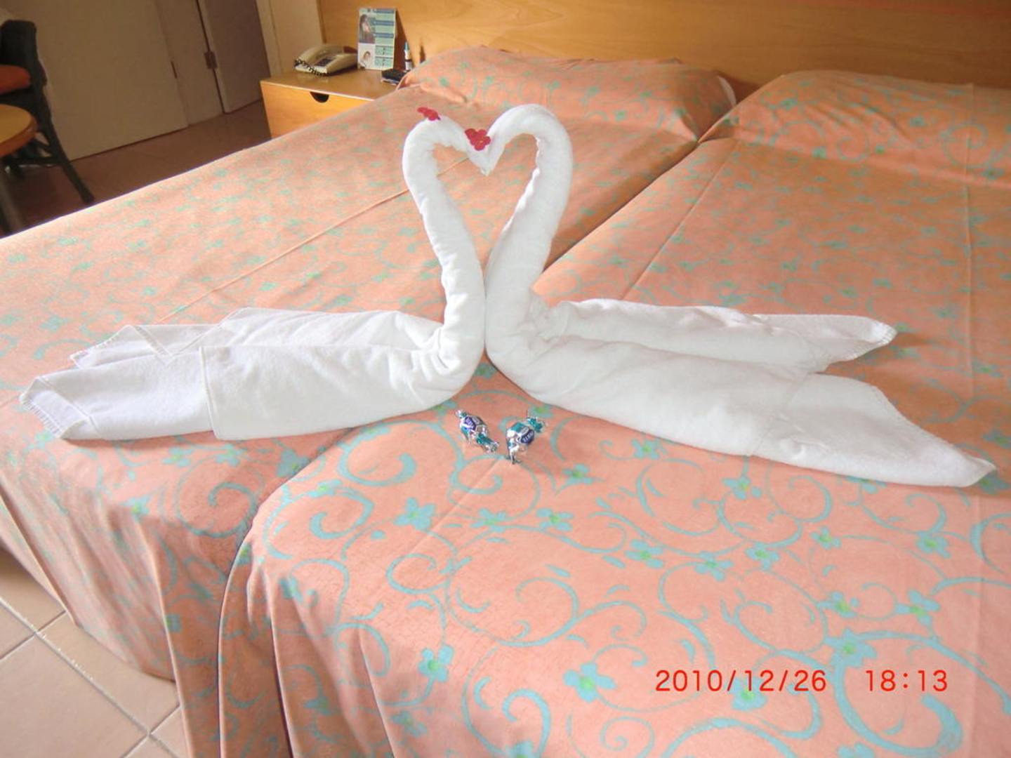 Schwänejeden Tag gab es verschiedene Tiere/ Figuren aus Handtüchern auf den Betten.