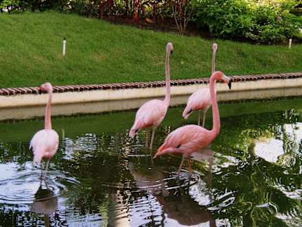 Teich mit Schwänen, Enten, Flamingos, etc...