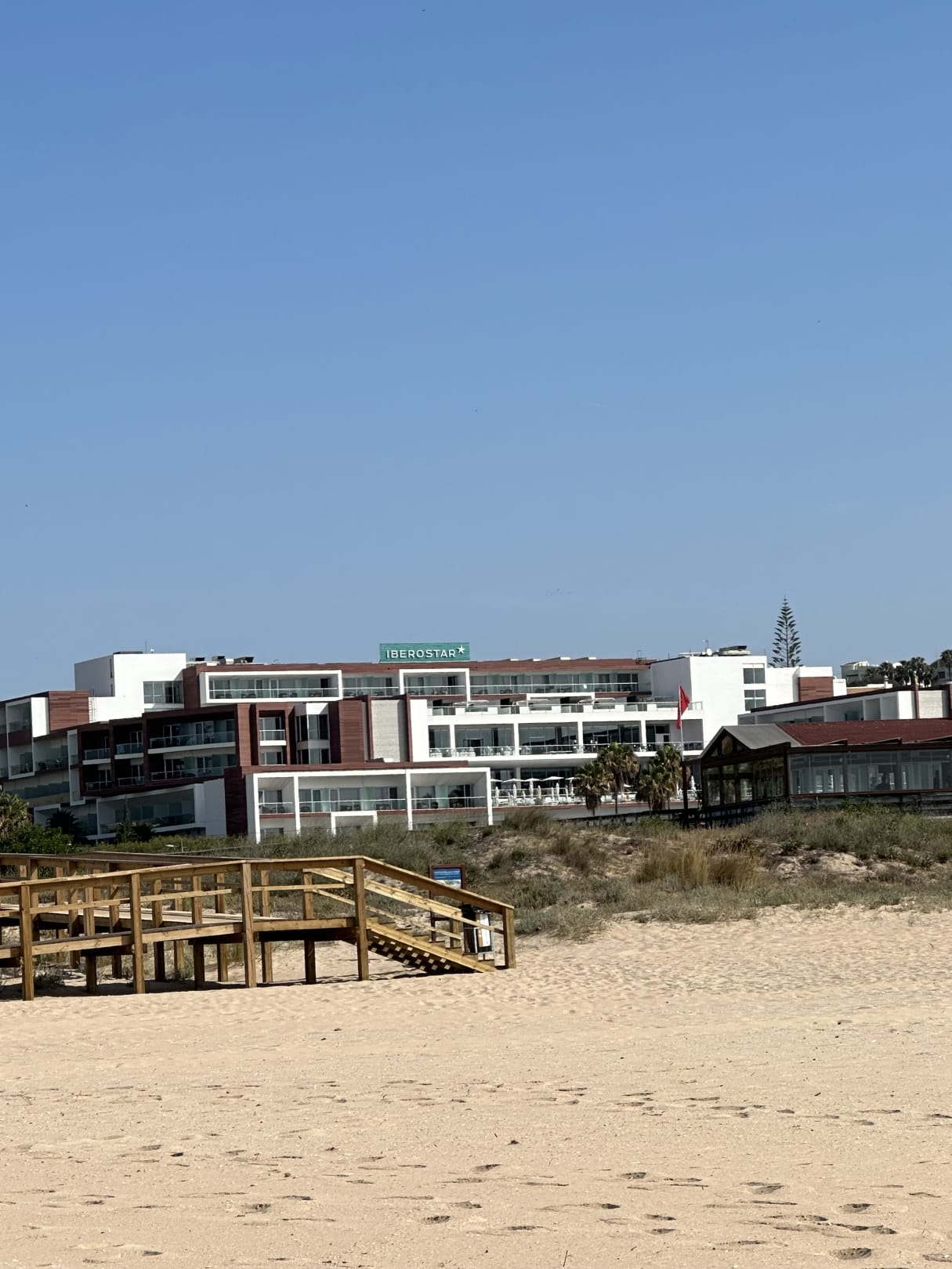 Am Strand mit Blick auf das Hotel