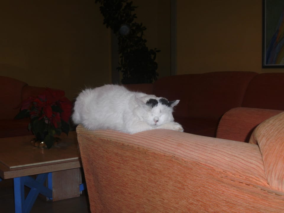 Die Hauskatze des Hotels beim Nickerchen halten.