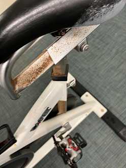 Sport & FreizeitFitness-Geräte in einem schlechten Zustand - Rost und Schmutz - abgenutzt und schwer einzustellen.