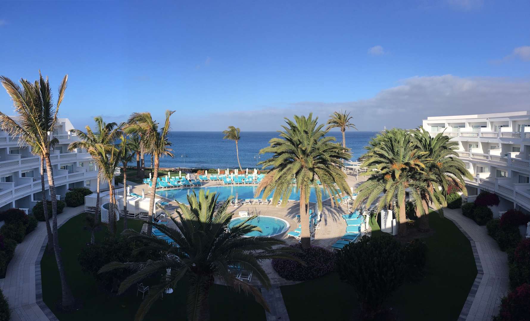Ausblick vom 3. Stock auf Pool und Meer