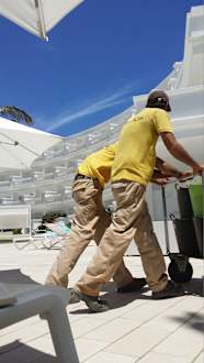 PoolHandwerker liefen immer schön zwischen den Liegen durch, Das es windig war und man alles ins Gesicht bekam war ihnen egal