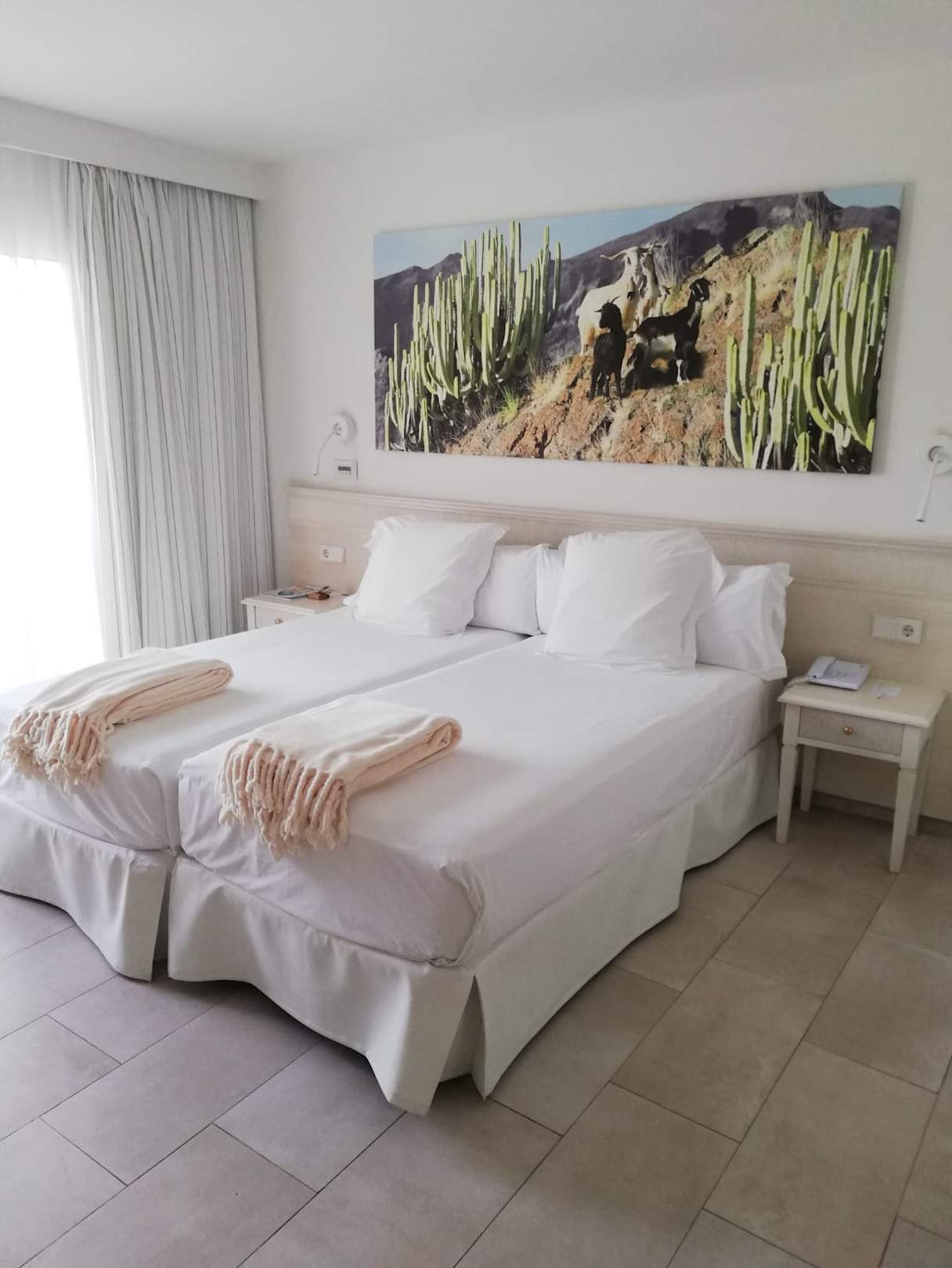 Zwei aneinander geschobe Betten