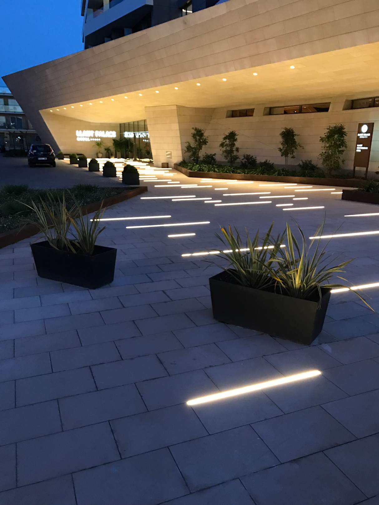 AußenansichtLED Bodenbeleuchtung am Abend vor dem Eingang