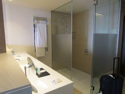 Blick auf bodenbündige Dusche
