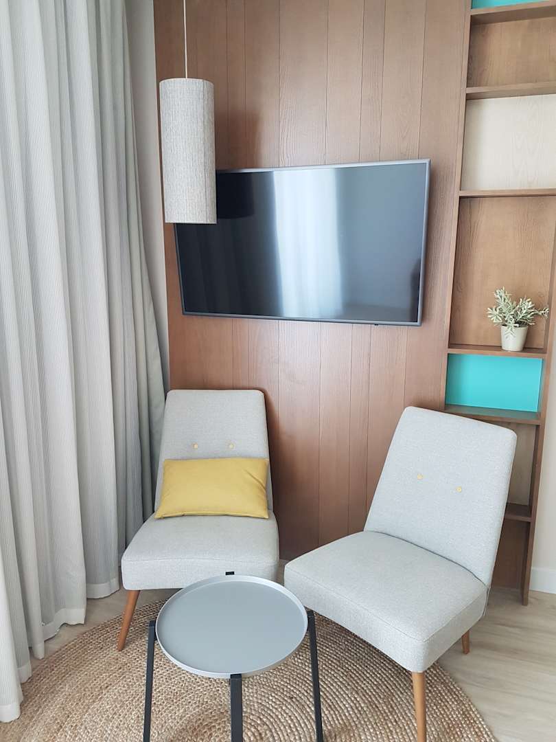 ZimmerUns war nicht plausibel wie man eine Lampe direkt vor den TV hängen kann? Zudem der Fernseher so hängt dass man nicht wirklich drauf schauen kann. Er hängt seitlich zum Bett. Das kommt wahrscheinlich daher, dass so das Bett einen direkten Meerblick h