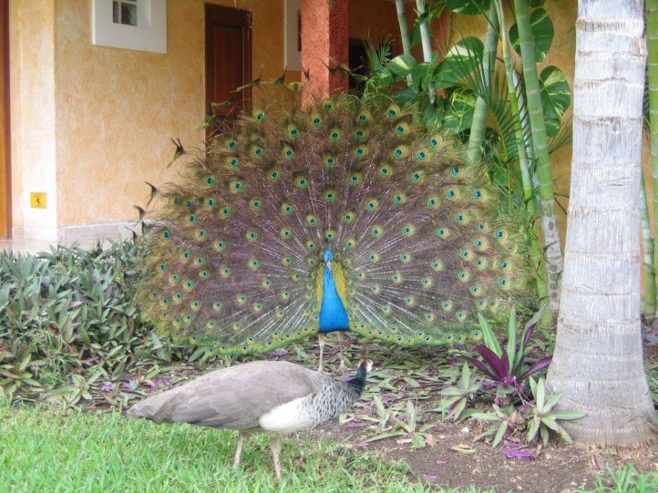 Der Pfau beim Flirten in der Hotelanlage IB Lindo