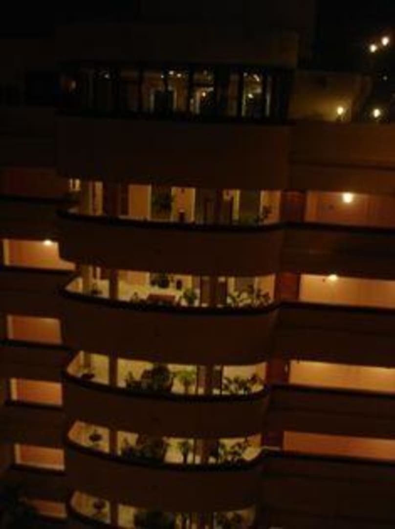 InnenhofBlick auf den Innenhof und die einzelnen Etagen von der Dachterrasse aus bei Nacht