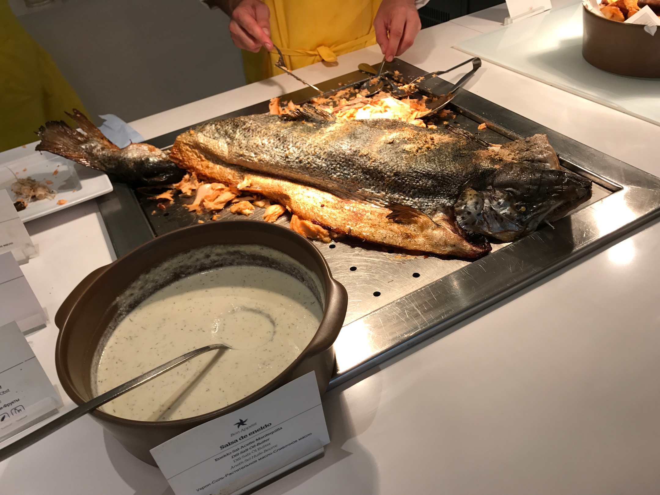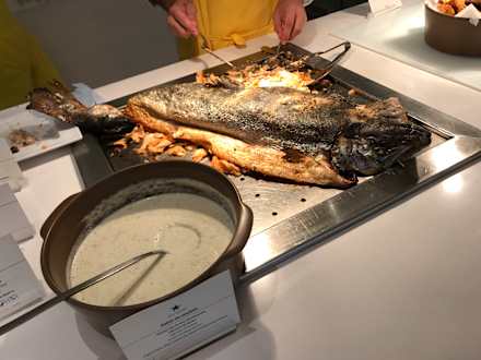 Der Lachs war sehr trocken, übergart.